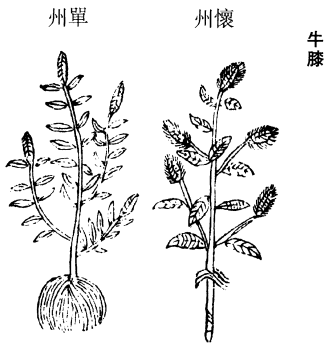 《图经》曰:今江、淮、闽、粤、关中亦有之,然不及怀州者为真。春生苗,茎高二三尺,青紫色,有节如鹤膝,又如牛膝状,以此名之。唐•崔元亮《海上方》治疟用水煮牛膝根,未发前服。今福州人单用土牛膝根,净洗,切,焙乾,捣,下筛,酒煎,温服,云治妇人血块,立效。