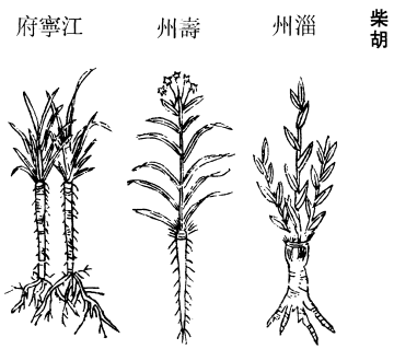 《图经》曰:柴胡,生洪农山谷及冤句,今关陕、江湖间近道皆有之,以银州者为胜。二月生苗,甚香。茎青紫,叶似竹叶,稍紧,亦有似斜蒿,亦有似麦门冬而短者。七月开黄花。生丹州,结青子,与他处者不类。根赤色,似前胡而强,芦头有赤毛如鼠尾,独窠长者好。