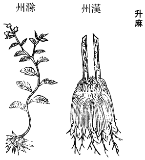 《药性论》云:蜀升麻,主治小儿风,惊痫,时气,热疾,能治口齿风䘌肿疼,牙根浮烂恶臭,热毒脓血,除心肺风毒热,壅闭不通,口疮,烦闷。疗痈肿,豌豆疮,水煎绵沾拭疮上。主百邪鬼魅。