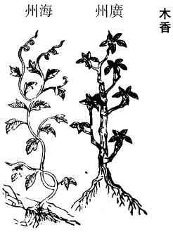 《衍义》曰:木香,专泄决胸腹间滞塞冷气,他则次之。得橘皮、肉豆蔻、生姜相佐使绝佳,效尤速。又一种,尝自岷州出塞,得生青木香,特9归西洛。叶如牛蒡,但狭长,茎高三四尺,花黄,一如金钱,其根则青木香也。生嚼之,极辛香,尤行气。