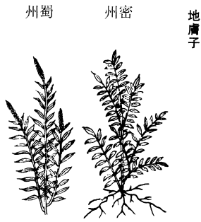 《图经》曰:地肤子,生荆州平泽及田野,今蜀川、关中近地皆有之。初生薄地五六寸,根形如蒿,茎赤叶青,大似荆芥。三月开黄白花,八月、九月采实,阴乾用。陶隐居谓茎苗可为扫帚者。苏恭云:苗极弱、不能胜举。二说不同,而今医家便以为独扫是也。故苏注云其叶味苦,寒,无毒。主大肠泄泻,止赤白痢,和气,涩肠胃,解恶疮毒。三四月、五月采。