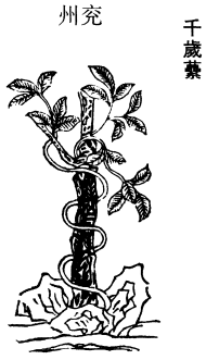 《衍义》曰:千岁虆,唐开元末,访隐民姜抚,已几百岁。召至集贤院。言服常春藤,使白发还鬒,则长生可致。藤生太湖,终南往往有之。帝遣使多取,以赐老臣。诏天下使自求之。擢抚银青光禄大夫,号冲和先生。又言终南山有旱藕,饵之延年,状类葛粉。帝取之作汤饼,赐大臣。右骁骑将军甘守诚曰:常春者千岁虆也,旱藕者杜25蒙也。方家久不用,抚易名以神之。民间以酒渍藤饮者,多暴死,乃止。抚内惭,请求药牢山,遂逃去。今书之以备世疑。