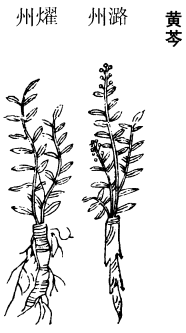 《图经》曰:黄芩,生秭归山谷及冤句,今川蜀、河东、陕西近郡皆有之。苗长尺余,茎干粗如箸,叶从地四面作丛生,类紫草,高一尺许,亦有一茎者,叶细长,青色,两两相对。六月开花紫色,根黄如知母粗细,长四五寸,二月、八月采根,暴乾用之。张仲景治伤寒心下痞满泻心汤,四方皆用黄芩,以其主诸热,利小肠故也。又太阳病,下之利不止,有葛24根黄芩黄连汤25,及26主妊娠安胎散27,亦多用黄芩。今医家尝用有效者,因著之。又《千金方》:巴郡太守奏加减三黄丸,疗男子五劳七伤,消渴,不生肌肉,妇人带下,手足寒热者。久服走及奔马,近频有验。食禁猪肉。又陶隐居云:黄芩丸者名子芩。仲景治杂病方亦多用之。