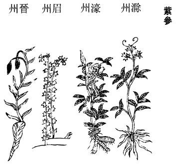 味苦,寒,无毒。主消渴热中,除邪气,肢体浮肿,下水,补不足,益气,疗伤寒,久疟,烦热,胁下邪气,膈中恶及风汗、内疸。多服令人泄。一名蚔(音岐)母,一名连母,一名野蓼,一名地参,一名水参,一名水浚,一名货母,一名蝭(音匙,又音提)母,一名女雷,一名女理,一名儿草,一名鹿列,一名韭逢,一名儿踵草,一名东根,一名水须,一名沈燔,一名(杜含切。臣禹锡等谨按《唐本》一名昌支。)生河内川谷。二月、八月采根,曝乾。
