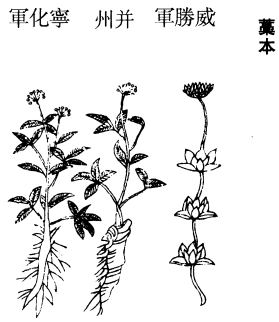 味辛,寒,有小毒。主瘰疬丹毒,小儿无辜寒热,大腹痞满,痰饮膈上热。生研绞汁服一合,当吐出胸膈间宿物。生人家阶庭湿处,高三二寸,苗叶似羃䍥,去疟为上,江东有之,北土无。