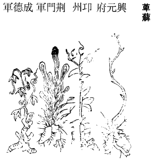 味苦、辛,温,无毒。主饮32逆上气,胸中寒热结气,去劳伤33,痿蹶,安五脏,疗咳34唾脓血,止喘悸,五劳体虚,补不足,小儿惊痫。一名紫蒨,一名青菀。生房陵山谷及真定、邯郸。二月、三月采根,阴乾。款冬为之使,恶天雄、瞿麦、雷丸、远志、茵35蔯蒿。