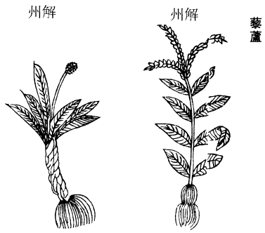 主蛇虺及毒虫等螫。取根、叶捣傅咬处,当下黄水。生平地。叶似苦杖而小,节赤,高一二尺,种之辟蛇。又有一种草,茎圆似苎,亦傅蛇毒。