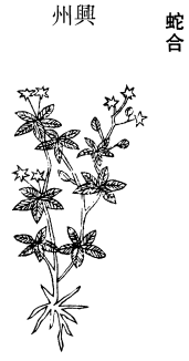 《日华子》云:蛇含,能治蛇虫、蜂虺所伤,及眼赤,止血,(火劦)风疹,痈肿。茎、叶俱用。又名威蛇。