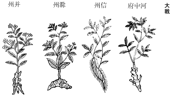 《唐本》注云:常山,叶似茗狭长,茎圆,两叶相当。三月生白花,青萼。五月结实,青圆,三子为房。生山谷间。高者不过三四尺。