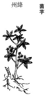 《日华子》云:消痰,破癥结,胸膈满,腹胀,气喘,痃癖,开胃下食,消肿毒,镇肝明目。根8亦有形似高良姜大小,赤黄色淡硬,五六七八月采。