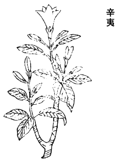 《图经》曰:辛夷,生汉中川谷。今处处有之,人家园庭亦多种植。木高数丈,叶似柿而长。正月、二月生花似著毛小桃子,色白蒂紫。花落无子。至夏复开花,初出如笔,故北人呼为木笔花。又有一种,枝、叶并相类,但岁一开花,四月花落时,有子如相思子。或云都是一种。经一二十年老者,方结实。即其花开早晚,亦随南北节气寒温。九月采实,暴乾用。或云:用花蕊缩者良,已开者劣,谢者不佳。