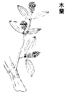 《图经》曰:木兰,生零陵山谷及太山,今湖、岭、蜀、川诸州皆有之。木高数丈,叶似菌桂叶,亦有三道纵文,皮如板桂,有纵横文,香味劣於桂。此与桂枝全别,而韶州所生,乃云与桂同是一种。取外皮为木兰,中肉为桂心。盖是桂中之一种耳。十一月、十二月采,阴乾用。任昉《述异记》云:木兰舟,在浔阳江中,多木兰。又七里洲中有鲁班刻木兰舟,至今在洲中。今诗家云木兰舟,出於此。