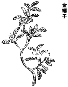 《日华子》云:金樱花,平。止冷热痢,杀寸白、蛔虫等。和铁粉研,拔白发,傅之再出黑者,亦可染发。又云:金樱东行根,平,无毒。治寸白虫。剉二两,入糯米三十粒,水二升,煎五合。空心服,须臾泻下。