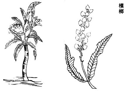 陶隐居云:此有三四种。出交州,形小而味甘。广州以南者,形大而味涩。核亦有大者,名猪槟榔。作药皆用之。又小者,南人名蒳子,俗人呼为槟榔孙,亦可食。
