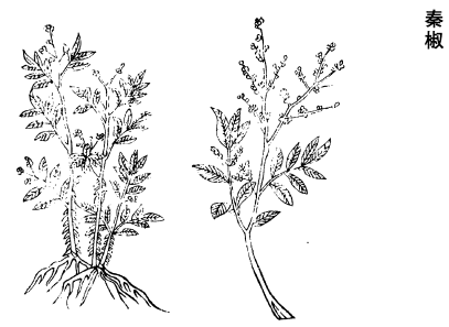 《药性论》云:秦椒,君,味苦、辛。能治恶风遍身,四肢㿏痹,口齿浮肿摇动,主女人月闭不通,治产后恶血痢,多年痢,主生发,疗腹中冷痛。