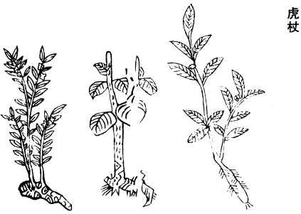 《衍义》曰:虎杖根,微苦,《经》不言味。此草药也。《蜀本图经》言作木高丈余,此全非。虎杖大率皆似寒菊,然花、叶、茎、蕊差大为异。仍茎、叶有淡黑斑。自六月七月旋旋开花,至九月中方已,花片四出,其色如桃花,差大,外微深。陕西山麓水次甚多。今天下暑月多煎根汁为饮。不得甘草,则不堪饮。《药性论》云:和甘草煎,尝之甘美。其味甘,即是甘草之味,非虎杖也。论其攻治,则甚当矣。
