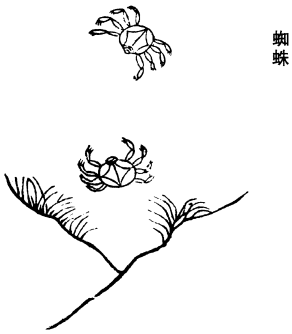 《衍义》曰:蜘蛛,品亦多,皆有毒,《经》不言用是何种。今人多用人家檐角、篱头、陋巷之间,空中作圆网,大腹、深灰色者。遗尿著人作疮癣。