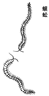 《衍义》曰:蜈蚣,背光黑绿色,足赤,腹下黄。有中其毒者,以乌鸡屎水调稠,涂咬处,效。大蒜涂之,亦效。复能治丹毒瘤。蜈蚣一条乾者,白矾皂子大,雷丸一个,百部13二钱,秤,同为末,醋调涂之。又畏蛞蝓,不敢过所行之路,触其身则蜈蚣死,人故取以治蜈蚣毒。桑汁、白盐亦效。