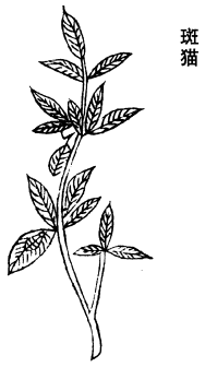 味辛,微温,有毒。主蛊毒,鬼疰,破淋结,积聚,堕胎。七月取,暴乾。一名斑猫。