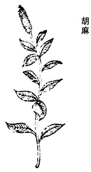 《图经》曰:胡麻,巨胜也。生上党川泽。青蘘,巨胜苗也。生中原川谷,今并处处有之。皆园圃所种,稀复野生。苗梗如麻,而叶圆锐光泽。嫩时可作蔬,道家多食之。谨按《广雅》云:狗虱,巨胜也;藤苰,胡麻也。陶隐居云:其茎方者名巨胜;圆者名胡麻。如此巨胜、胡麻为二物矣。或云本生胡中,形体类麻,故名胡麻。又八谷之中,最为大胜,故名巨胜。如此似一物二名也。然则仙方乃有服食胡麻、巨胜二法,功用小别。疑本一物而种之有二。如天雄、附子之类。故葛稚川亦云:胡麻中,有一叶两荚者为巨胜是也。食甚甘1,当九蒸曝,熬捣之,可以断谷。又以白蜜合丸,曰静神丸,服之益肺,润五脏。压取油,主大2热秘肠结,服一合则通利。
