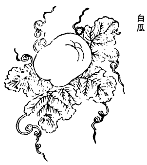 《图经》曰:白瓜子,即冬瓜人也。生嵩高平泽,今在12处有之,皆园圃所莳。其实生苗蔓下,大者如桶而更长,皮厚而有毛,初生青绿,经霜则白者13涂粉。其中肉及子亦白,故谓之白瓜。人家多藏蓄弥年,作菜果。入药须霜后合取,置之经年,破出核洗,燥乃擂取人用之。亦堪单作服饵。又有末作汤饮,又作面药,并令人颜色光泽。宗懔《荆楚岁时记》云:七月采瓜犀,以为面脂。犀,瓣也。瓤亦堪作澡豆。其肉主三焦14渴疾,解积热,利大小肠,压丹石毒。