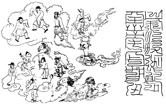 台灵大神,皇纲天君。手把胞符,头巾紫冠。黄回赤精,上精命门,化神返生。