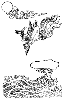 (咒毕,咽津九过,叩齿,存月圆,真水成桥,下接山石;我身乘彩凤入月中。)
