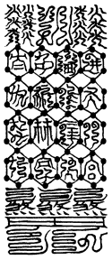 右煞鬼上符,用赤纸朱书。凡欲制魔杀鬼,牒煞鬼制魔将吏,烧於中庭,其夜黑风烈雨,其鬼自灭。无雨有风,鬼遁千里。无风无雨,即非大魔妖魈,天司不行极典。记之,不可轻也。报应毕,黄纸朱书玉字,或栢木朱书,永镇其地,迎生旺之炁,永无妖魔之患。