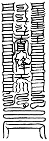 此上帝集三界符也。设醮请降,朱书黄素,或作符牌。