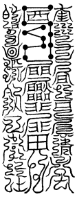 九炁萌阳,玉历龙章。八卦外布,一德中藏。化生自我,绝死回祥。(清醮云:青帝侍魂,九阳升光。洞映内照,化通自然。亡醮云:九阳升元,内外洞明。二七四五,化通自然。)