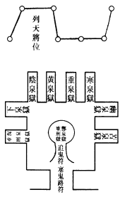 师曰:九泉者,北都罗酆幽泉,恶狱也。事系天庭,不可轻行。故酆都为天下鬼神之府,专检制魔妖之权行,今宣威莫大於此。凡狱有九,一曰酆泉号令之狱。二曰重泉斩馘之狱。三曰黄泉追鬼之狱。四曰寒泉毒害之狱。五曰阴泉寒夜之狱。六曰幽泉煞伐之狱。七曰下泉长夜之狱。八曰苦泉屠戮之狱。九曰溟泉考焚之狱。凡九狱,各有所主,第一狱主摄天魔。第二狱主摄不职典祠。第三狱主摄山魈精魅。第四狱主摄江湖水怪。第五狱主摄血食邪神。第六狱主摄山林木客。第七狱主摄古墓伏尸。第八狱主摄师巫、逆鬼。第九狱主摄刑亡横死。凡狱前列斗灯,径阔一尺二寸,牵罡二尺四寸。前列九狱,每狱前悬追鬼符,内悬重刑符。狱门悬一竹竿,长三尺,挂追鬼榜,总门挂塞鬼路符。逐日三时上香行持,向晓看迹,即知是何鬼也。轻则禁锁,重则三涂重役,太重者灭迹除形。如法: