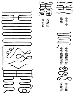 此符治金银铜铁之怪,应千年铜佛铜像铸造之日,适逢时日凶邪,则真灵不降,妖孽附之。以铁券朱书此符,密埋神像之下,则鬼灵遁散,不复为怪,不以其像遇毁矣。