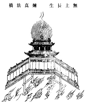 真火炎明,煦映神室。冲融真炁,辉煌慧日。真火炼形,尸邪消灭。彭尸遁散,七魄散失。法体真身,炼胎易质。受度受炼,上承玉敕。
