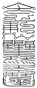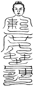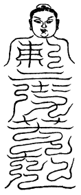 右长生灵符,已依式书奏三天门下,合同照应,给付某人收执佩持。将来运应灭度,不经地府,径上朱宫。九炼成真,形神俱妙。此处用印一半,[一半留奏状上。来焚此,永离幽冥,径上朱宫。