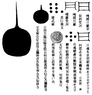 师曰:旸乌真火九芒符者,日光符也。旸谷,日出抟桑之地也。乌乃日中三足乌也,乌,鸦也。其鸦三足,法木三炁,木能生火故也。日有九芒,阳数也。此符极热极暖,治一切沈寒痼冷、泄㵼转筋、寒颤自汗、面黑唇青、手足厥逆、吃噫吐痰、腹痛自利,皆宜服之。每服五符,撚作小丸子,面南或东,枣汤吞下。