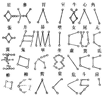 东七宿三十三星,南七宿三十二星,西七宿五十星,北七宿六十三星,中北斗七星,并描於绛纱灯屏之上。屏后安一灯,随方置之,香烛供养如法。其灯用净沙染五色,各作一堆,灯盏安其上,凡五灯。