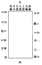 坛上除十方天尊牌位不用,别用九星牌位:贪狼南。巨门东北。禄存西。文曲西北。武曲东南。破军东。左辅西南。右弼北。廉贞则附西南也。若以九星飞宫法,随月排定,尤妙。