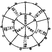 外坛八门牌额书门名于前。又以朱书天文四字,于各牌之后。