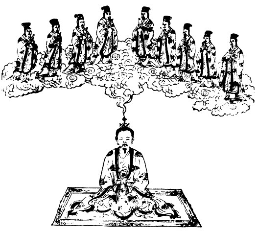 臣某至心上启降授徊风大混合师,上真圣母中候元君王夫人,臣今入室焚香,讽读《上清大洞真经三十九章》,伏愿调和三魂,制炼七魄,尸虫沉落,腑藏光华,百病不生,灾害消灭,色返婴孩,白日腾翥,愿七祖罪解,上生福堂。