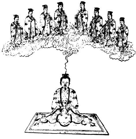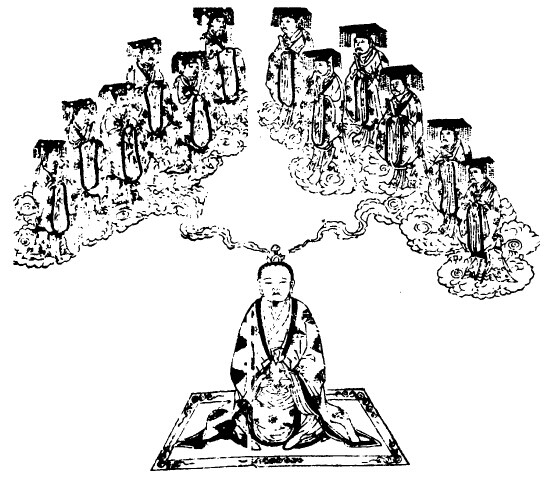 毕,平坐诵经,存帝一尊君对兆面前,空玄中坐,尊君之口正对兆口,听兆所读真经。