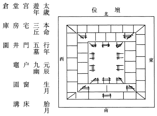 宫 宅 门 户 窗 床 堂 房 井 灶 圊 沟 仓 库 园