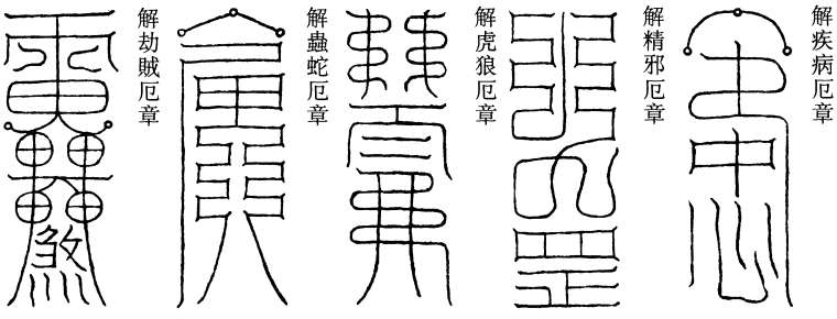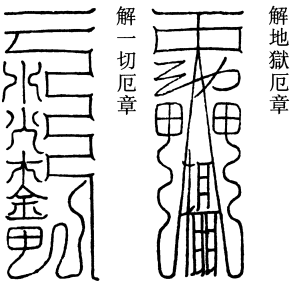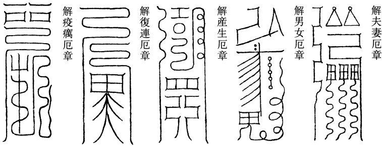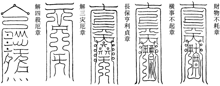 右符作用:先叩齿凝神,存东方天门开,如日初出之状,鼻引口吸,吹在纸上。书毕,口诵密咒云:九灵九灵,合吾真形,水火得位,内外洞明,急如天律元亨利贞。