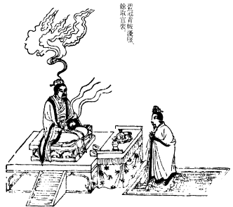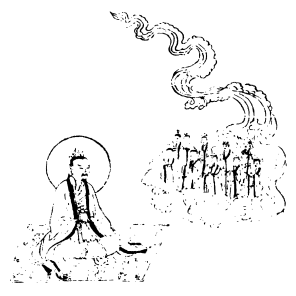 存竟,礼十方,次礼真经真人曰:礼经时,心注太上老君,三拜,次念尹先生,河上真人,玄中法师,复三拜。常三万六千仙童玉女侍经烧香,为兆求白日升天之道者也。