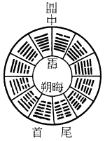 (息者,进火之候,坤三变而成乾也。消者,退符之候,乾三变而成坤也。今自朔旦震卦用事之后,历兑至乾。望罢巽卦用事之后,历艮至坤。其间不见坎离爻位,是谓坎离没亡欤。曰:坎离非没亡也,行乎六虚之间,而往来不定尔。)
