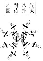 右明先天六十四卦圆图之象。天地定位,乾南坤北。天尊乎上,地卑乎下。山泽通气,山镇西北,泽注东南。雷风相薄,雷出东北,风盛西南。水火不相射,离降而东大明日生於东,坎升而西小明月生於西。此以内象言,主乎静而镇位者也。八卦相错,错者交而互之,一左一右之谓。乾互巽,而巽互乾;坎互兑,而兑互坎;离互艮,而艮互离;坤互震,而震互坤。乾、兑、离、震,阳仪之卦,本在左方,今互居右方阴仪之上。坤、艮、坎、巽,阴仪之卦,本在1右方,今互居左方阳仪之上。由是刚柔相摩,八卦相荡,而变化无穷焉。申说详见下文。此以外象言,主乎动而趣时者也。圜转推荡,而成六十四卦;环周於八方,亦如二十八宿分布於十二辰,是故右行而数之,则乾、兑、离、震、坤、艮、坎、巽八卦,由内若外,如环之无端也。数往者顺;往谓已往过后之卦;顺者顺其八卦之叙,如自今日而追数前日,自冬至而数回立冬、秋分,则自坤而艮,而坎,而巽、乾,皆顺其叙而数之也。知来者逆,来谓方来在前之卦;逆者,逆其八卦之叙,如自今日而逆计来日,自冬至而数向立春、春分,则自坤而震,而离,而兑、乾,皆逆其叙而知之也。然凡《易》之数,皆由逆而推,生爻自下而上,数卦自右而左,故曰:《易》,逆数也。