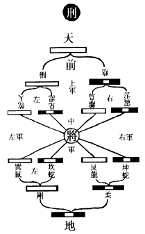 《传》曰:师,众也,众必有所比。比而伍、两、卒、旅、师、军之名立焉。天子六师,大国三军,其奇正变合,率皆本乎《易》象。至汉相诸葛武侯得之,演而为八阵。天、地、风、云,则后天四维之象也;龙、虎、鸟、蛇,则后天四正之象也。正以立经,奇以合变。奇正相生,首尾相应。圆若辐凑,方若棋布。藏於九地之下,静而翕也;动於九天之上,动而辟也。周流无滞,同乎水;安重不挠,类乎山。强毅刚果,则兑金之义;威断严明,则离火之情。迅若雷,奋发之神也;猋若风,飞运之速也。凡是八者,将所宜。闻《握奇文》曰:四为正,四为奇,余奇为握机。(阵数有九,中心零者,大将握之,四面八向皆取准焉。阵间容阵,队间容队,以前为后,以后为前。进无速奔,退无遽走。四头八尾,触处为首。敌冲其中,两头皆救。)五人为伍,五伍为队。数起於五,终於八,盖五者伍法,而八则阵法也。小成八队,中成六十四队,大成五百一十二队。(周军制五人为伍,五伍为两;而四两为卒,则百人也。於是五之而小成,五百人为旅。又五之而中成,二千五百人为师。又五之而大成,一万二千五百人为军。盖以五而三因之也。八阵则五人为伍,五伍为队。八之而小成,二百人。又八之而中成,一千六百人。又八之而大成,一万二千八百人。则以八而三因之也。孙子曰:治众如治寡,分数是也。分数明而多多益办矣。)所握之机,各当其八之一。机,中权也,如户之枢密,运於中而不见其迹。故八而实九,大将中居,八方环列。九经九纬,以大包小,止为营,行为阵,鸟南、蛇北、龙东、虎西,天地风云列于四维;四方为正,四隅为奇,奇正相生,而变化不穷矣。
