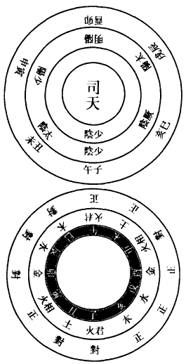 天地遘醇,物我被化,则寒暑燥湿风共主乎一岁之内,生长化收藏咸备乎万物之中。非秪一岁也,虽一时一刻之短,而五行之气莫不存。非特一物也,虽一毫一芒之细,而五行之化莫不载。然司其运,步其气,或太或少,乃轮主岁时而更盛更衰也。上达於天,则有五星倍减之应;下推於地,则有五虫耗育之验。其五谷、五果、五味、五色之化类,岂有一岁而无者,惟成熟有多少,色味有厚薄耳。盖金木水火土并行,其化互有休囚王相不同之目而己。直其运者,独以为之主。当其时者,专以为之客。共行天令,遇阳年则气王而太过,遇阴年则气衰而不及。太过己胜则欲齐其所胜之化,不及己弱则胜者来兼其化。太过岁谓木齐金化,金齐火化,火齐水化,水齐土化,土齐木化也。不及岁谓木兼金同化,金兼火同化,火兼水同化,水兼土同化,土兼木同化也。其司天与运相临,间有逆顺,相刑相佐。司天则同其正,抑运则反其平。如是五气平正,则无相陵犯也。太过之岁,五运各主六年,乃五六三十阳年也。大角谓六壬年,逢子午寅申二火司天,则木运为逆者,火木之子也,居其上为逆。大徵谓六戊年,内逢寒水司天,正抑其火,复为平气之岁,上羽与正徵同也。大宫谓六甲年也,大商谓六庚年也,内逢子午寅申二火司天,正抑其金,复为平气之岁。上徵与正商同也。逢辰戌水司天为逆者,水金之子也,居上为逆。大羽谓六丙年也,不及岁五运各主六年,乃五六三十阴年也。少角谓六丁年也,逢巳亥木司天,与运气得助。上角同正角也。逢卯酉金司天,与运兼化,上商同正商也。逢丑未土司天,以木不及金兼化,则土得其政,上宫同正宫也。少徵谓六癸年也,内逢卯酉金司天,以火不及水兼化,则金得其政,上商同正商也。少宫谓六己年也,内逢丑未土司天,与运合得其助,上宫同正宫也。逢巳亥木司天,与运兼化,上角同正角也。少商谓六乙年也,内逢卯酉金司天,与运气合得其助,上商同正商也。逢巳亥木司天,以金不及火兼化,则木得其政,上角同正角也。少羽谓六辛年也,逢丑未土司天,与运兼化,上宫同正宫也。内言上者,乃司天之令,其五大、五少岁所纪不同者,盖过不遇也。如君火、相火、寒水常为阳年司天,湿土、燥金、风木常为阴年司天。然六十年中,各有上下临遇,或司天胜运,或运胜司天,或运当大过,不务其德,而淫胜其所不胜,或运当不及而避其所胜,而不兼其化。及太一天符、岁会、同天符、同岁会,更按文推,此不再书也。