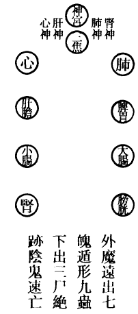 右件内观之法,止是静坐升身,举起丹中纯阳之气。内炼五脏,气附神像,上入顶中。外炼四肢,气迸金光,外出神体。非久,神合为道,弃壳升仙。防其阴鬼外魔、三尸七魄,假托形像,以乱天真,混杂阳神,不能合道。所以不计昼夜,常随气转。卯时观肝,肝气现青。午时观心,心气现红。酉时观肺,肺气现白。子时观肾,肾气现黑。五色气出,壶中真境,不同尘世,车马威仪,胜及王者。不厌升身起火,真假自然两向也。