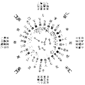 天垂万象,以北辰为之枢机。统领众星,无失其时者也。夫北斗七星之列,各自有方,主之则曰:魁枕参首,杓携龙角,斗卧巨蟹者。明知此北斗第一星,谓之魁星,第七星谓之杓星,自魁至杓,凡有七星,而布南方七宫之辰也。故曰:戌为河魁,辰为天罡。凡经七辰,象北斗焉。