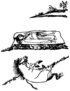 (良马乘风去,轻拈在目前。自在岩下卧,牧童枕月眠。)